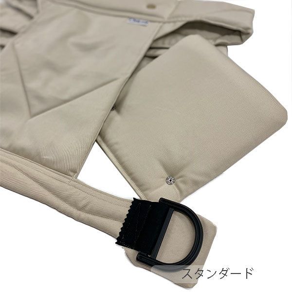 ベーシックな色を揃えたUnoシリーズのサンドベージュ。 光沢があって、清潔感のあるお色です。同じスタンダードサイズの「ベージュ」よりも薄い色です。 ■スタンダード基本仕様 対象年齢 頚がすわってから14.9キロまで(約3歳程度) 素材とサイズ 肩ひもの長さ(背当てから左右それぞれ)135センチ、肩ひもの幅7.5センチ腰ひもの長さ(Dカン~Dカン)55センチ背当ての長さ 27センチ、背当ての幅 21センチ 重量(平均) 約350グラム 適応サイズ ウエスト55cm以上、80cmくらいまで 特徴 足入れがないので赤ちゃんが寝てしまってもスムーズにおろすことができます。高い位置でおんぶすることにより、肩が凝りにくいです。 お勧めするのはこんな方 ・小柄で華奢な方・初めておんぶをする方・簡単にサッとおんぶをしたい方