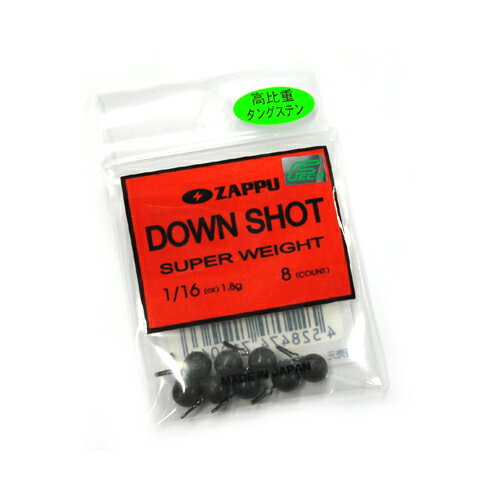 ZAPPU/ザップDOWN SHOT/ダウンショット スーパーウェイト◆入り数・1/32oz-10pcs ・3/64oz-9pcs・1/16oz-8pcs ・3/32oz-6pcs・1/8oz-6pcs ・3/16oz-4pcs★ZAPPUの名前をメジャーにした、スペースメタル採用のファーストモデル。ベーシックな球形にすることで沈みが早く感度もバツグン。いち早くボトムマテリアルを察知することが可能です。スペースメタルならではの一体成型技術により、小型モデルでも自動ハリス止めが採用でき、誰にでも使いやすいタイプになっています。