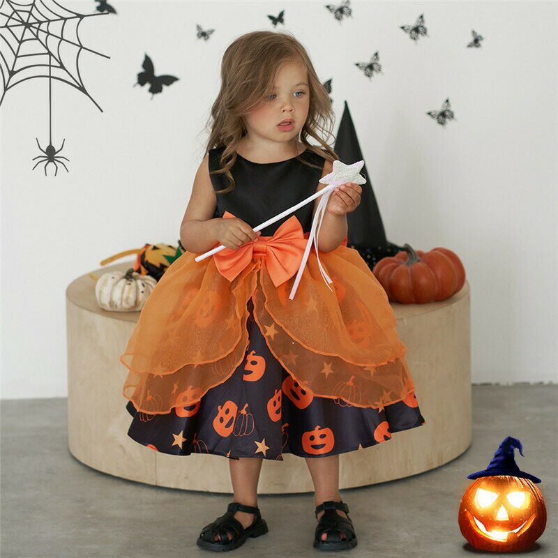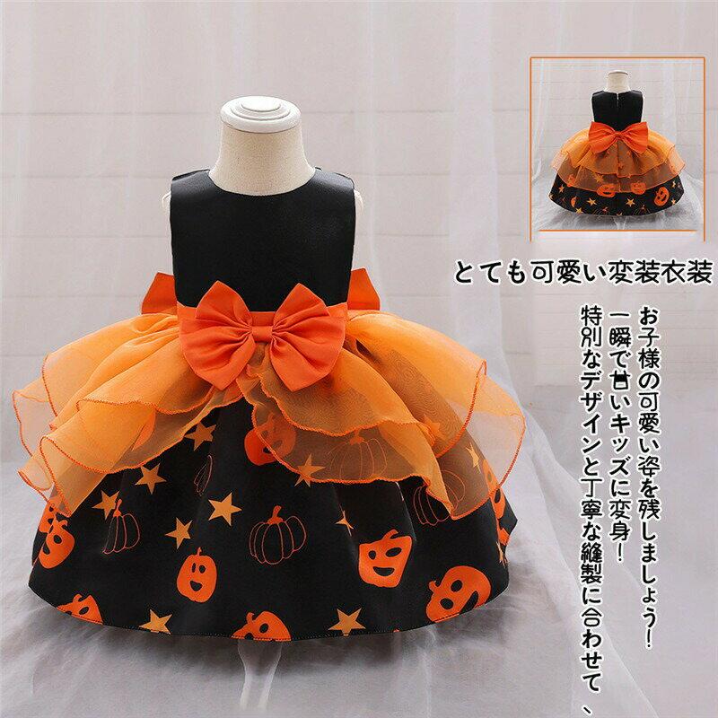 子供服 ハロウィン 女の子 ドレス 仮装 子供ドレス パーティー 子供 コスプレ衣装 ワンピース かわいい リボン 袖なし コスチューム 変身 かぼちゃイベント 変装 演出 ダンスウェア クリスマス 舞台 プレゼント キッズドレス 魔女コスプレ