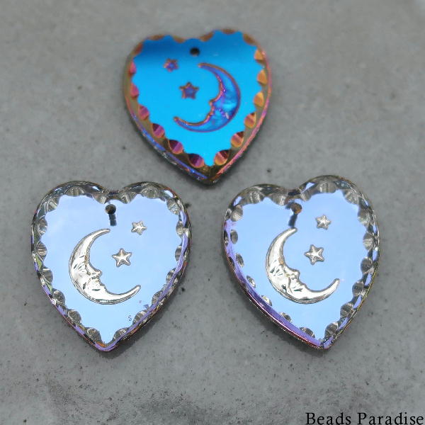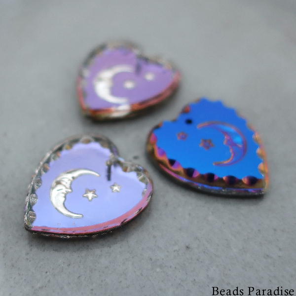 ドイツガラスペンダント【157】インタリオ(1個入り)20×18mmハート型ムーン&スター/AB