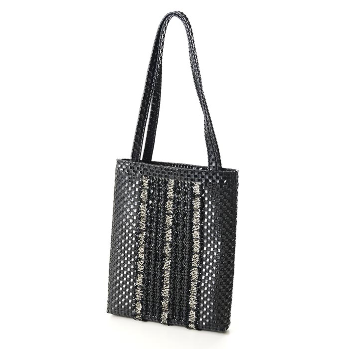 キット/イロハコードとリボンの縦長トートバッグ ティロワール ブラック【イロハコード/ハワイアンコード/ハンドメイド/手芸/手作りバッグ/コードバッグ】