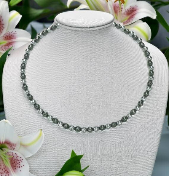 【W効果 男女兼用】テラヘルツ ネックレス高級品質 テラヘルツ 6mm丸玉 & 磁気ヘマタイト 6mm 丸玉 ネックレス【ゴム仕様 長さ約60cm】白銀玉がテラヘルツ