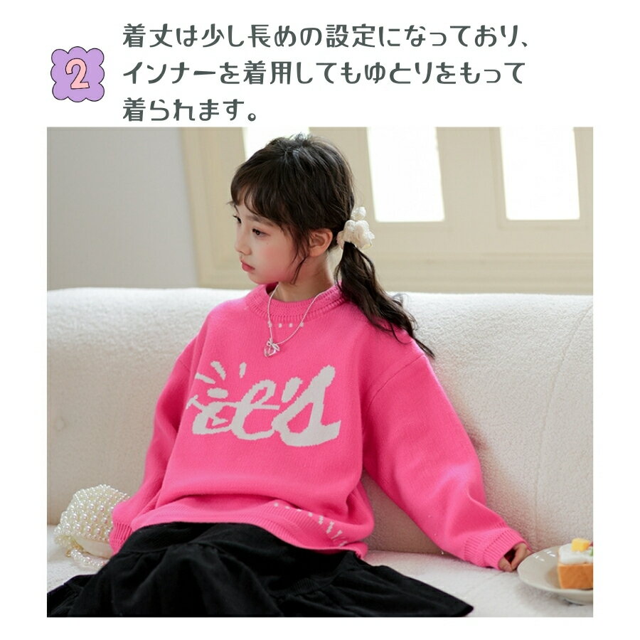 肌寒い季節でも気持ちが明るくなる、かわいらしいピンクの長袖セーターです。 お出かけ時はもちろんですが、部屋着としても活躍すること間違いなし! カジュアルなシーンで大活躍するこのセーターで、毎日をもっと楽しく彩りましょう。 【個性を引き立てるデザイン】インパクトのある配色が個性豊かで新しいものが大好きなお子様も気に入る可能性大!また人込みの中でも見つけやすくなるでしょう。 【ゆったりとした着心地】着丈は少し長めの設定になっておりますので、インナーを着用してもゆとりをもって着られます。 【SNS映えしそうなトップス】サイズ展開も豊富で親子コーデや友達とのリンクコーデも映えますので、思い出作りにもお使いください。 【コーディネイト例】お手持ちのパンツやスカートにシューズスニーカーなどをあわせた公園・お買い物、お出かけカジュアルスタイル。 【サイズ】120cm、130cm、140cm、150cm、160cm、170cm ■120 size:着丈 50.5、バスト 90、袖丈 34.5、肩幅 44 ■130 size:着丈 54、バスト 95、袖丈 38、肩幅 47 ■140 size:着丈 57.5、バスト 100、袖丈 41.5、肩幅 50 ■150 size:着丈 61、バスト 105、袖丈 45、肩幅 53 ■160 size:着丈 64.5、バスト 110、袖丈 48.5、肩幅 56 ■170 size:着丈 68、バスト 115、袖丈 52、肩幅 59 スウェット トップス 長袖 キッズ服 楽々コーデ 子供服 おしゃれ かわいい 贈り物 プレゼント ギフトアイテム 普段使い ゆったり 春秋冬 女の子 キッズ ジュニア ガールズ 子供服 子ども服 こども 姉妹 お揃い 服 通販 安い 激安 人気 外出 お出かけ リンクコーデ コーデ コーディネート ペアルック お揃い お得 綿 120cm 130cm 140cm 150cm 160cm 170cm ●商品詳細 材質:レーヨン、ポリエステル、ナイロンbr> カラー:ピンク ●サイズ 120 size:着丈 50.5、バスト 90、袖丈 34.5、肩幅 44 130 size:着丈 54、バスト 95、袖丈 38、肩幅 47 140 size:着丈 57.5、バスト 100、袖丈 41.5、肩幅 50 150 size:着丈 61、バスト 105、袖丈 45、肩幅 53 160 size:着丈 64.5、バスト 110、袖丈 48.5、肩幅 56 170 size:着丈 68、バスト 115、袖丈 52、肩幅 59 ※少し小さめサイズなので、ワンサイズ大きめを選ぶとGOOD ※平置き採寸となりますので、1-3cmの誤差についてはご容赦下さい。 ※この商品は他モールでも販売しております。在庫数の更新は随時行っておりますが、お買い上げいただいた商品が、品切れになってしまうことが稀にございます。 その場合、お客様には必ず連絡をいたしますが、万が一入荷予定がない場合は、キャンセルさせていただく場合もございますことをあらかじめご了承ください。