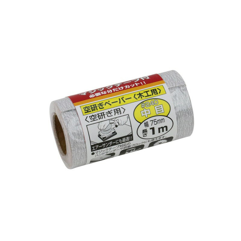 商品情報説明必要な分だけカットして無駄なく使えて経済的です。用途中荒目ペーパーの目ならし、木工素地仕上、塗装前仕上げ。機能ロール式なので、整理しやすく収納にも便利です。マジックテープ対応のハンドサンダーや研磨ブロックにも使えます。両面サンディングスポンジにご利用いただけます。カットする場合は、裏面側からカッターナイフでカットしてください。仕様●サイズ:幅75mmX長さ1m。●中目。●粒度:240。●空研ぎ用。材質等付属品・部品など注意・ご案内用途以外には使用しないでください。粒度を確認の上、傷がつくと困るものには使用しないでください。【ご注意(免責事項)> 必ずお読み下さい】商品情報には注意を払っておりますが、メーカー都合により予告なくパッケージ、商品名、容量、産地等が変更になる場合がございます。予めご了承ください。