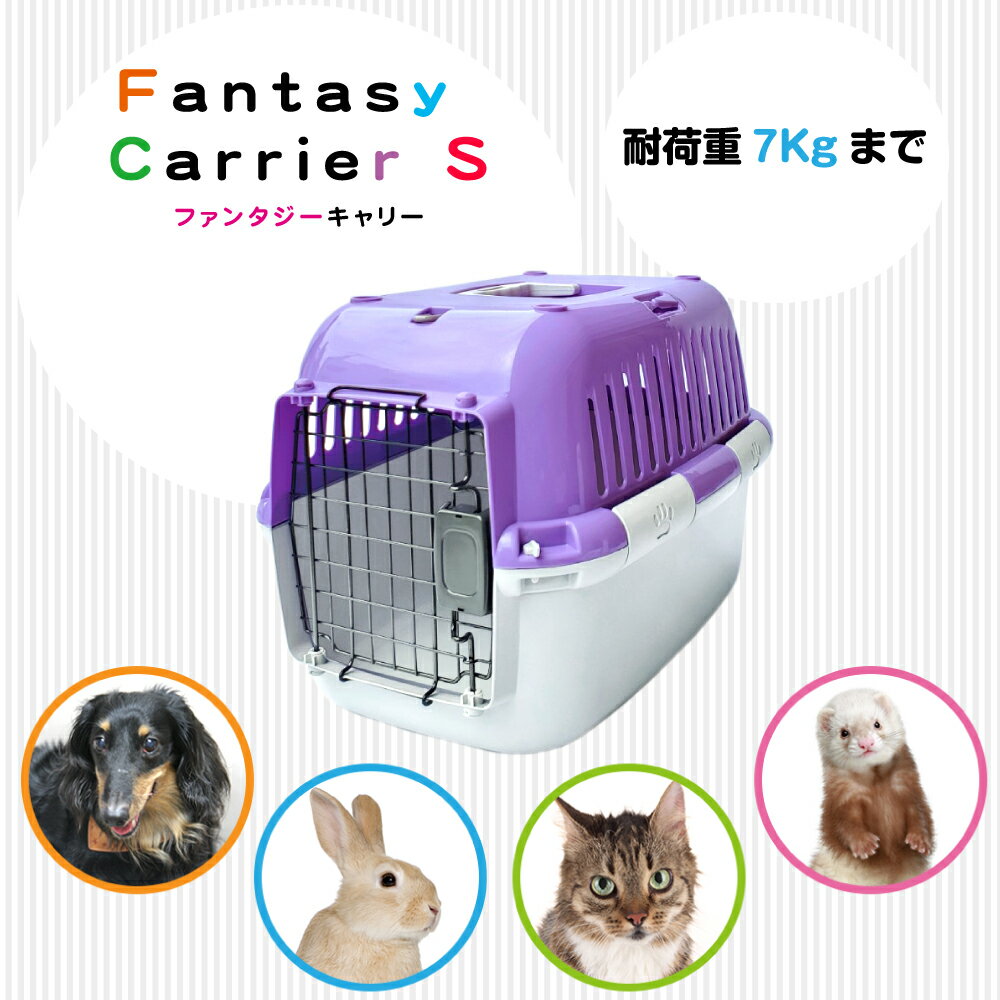 商品説明小型犬・猫用キャリー。小型犬、猫用ハードキャリー。おでかけ、通院、ドライブ、ハウス、旅行などいろいろなシーンで大活躍。使いやすさにこだわったシンプル設計でありながら欲しかった機能性は抜群。・車載した時にシートベルトを通して固定できます。・扉は格子状になっているので、中がよく見え、ペットにおやつをあげたり、中の様子も確認できます。・通気性が優れているので熱がこもりにくくなっております。・プラスチック製なので丈夫で軽量です。・お手入れ簡単で、衛生的。汚れてもすぐ洗うことができ、ふき取るだけて乾きます。お出かけ時はキャリーとして、お家ではハウスとしてお使い頂けます。普段からハウスとして使用して慣らしておくことで、通院やおでかけなどのいざというときもペットは安心して移動できます。■サイズS:W32×D49×H32cm (内寸/W29.5×D43×H30cm)■耐荷重7kgまでご使用方法-成分表記ポリプロピレン、スチール注意事項ご注文数量により納期が変動する場合がございます。製品の外観・仕様パッケージ等が予告なく変更となる場合があり、掲載画像と異なる事がございます。予めご了承下さいませ。商品名ファンタジーワールド ファンタジーキャリー S パープル 小型犬、猫 ペット用 キャリーケース ハードタイプ 耐荷重7kgまで パープル/ホワイト内容量等パープル/ホワイトメーカーファンタジーワールド生産国タイ商品区分キャリー広告文責株式会社ランガル 06-6195-1558