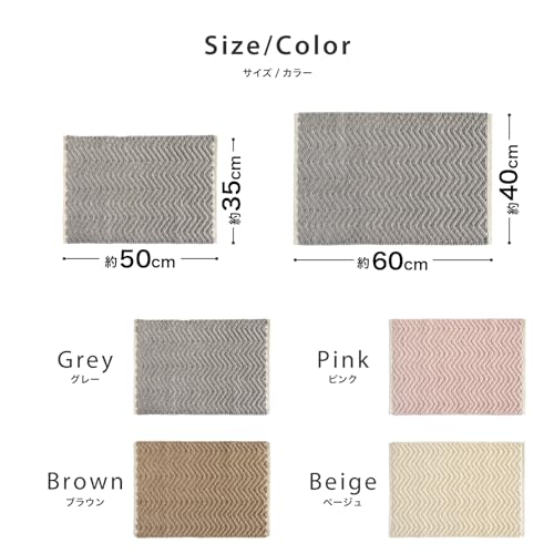 サイズ:約40cm*60cmマットの高さ:約10mm素材:パイル ポリエステル100%、基布 綿100%原産国:インド吸水・速乾性にすぐれたマイクロファイバーモール糸を使用。