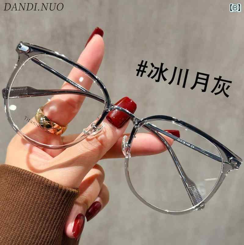めがね サングラス 韓国 近視の レディース チタン製 レトロ べっ甲 メガネ。 大きめの フレームで メイクなしでも 顔を 小さく 見せてくれる 軽量 メガネ フレーム。