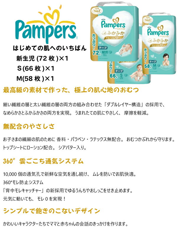 クーポン有【即日発送】完全包装 パンパース はじめての肌へのいちばん 新生児 Sサイズ Mサイズ おむつ RICO リコ おしりふき 4パック人気 出産祝 い オムツ ギフト コストコ 箱 ラッピング無料 オムツのみ オムツだけ ケース おしりふき 出産祝 ギフト