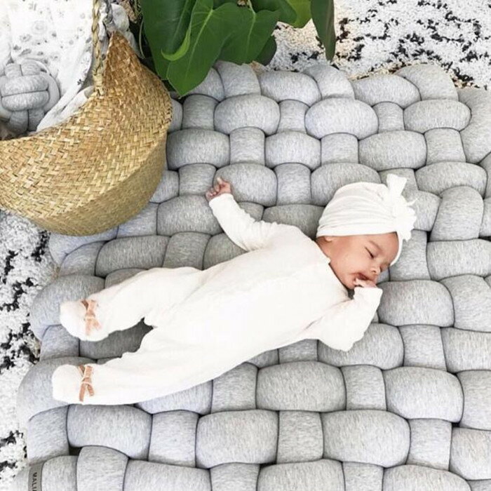 送料無料 ベビーマット 編み上げマット ベッドガード クッション 撮影小物 85*70CM 丸洗い 赤ちゃん 結び目 部屋飾り お洒落 大人気 出産祝い プレゼント 北欧風 癒しアイテム 敷マット 座蒲団 かわいいベビー用品 8colour INS北欧風 楽天海外通販