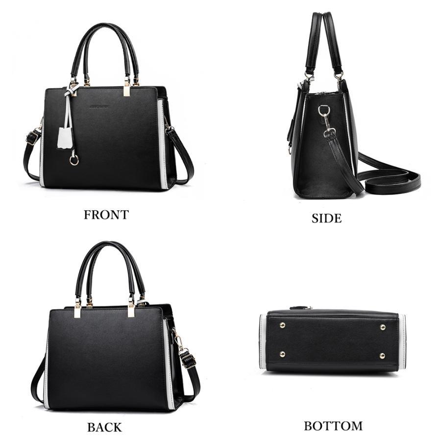 素材:合成皮革+ポリエステルカラー:ブラック/ネイビー/モカベージュ/キャメル/ダークグリーンサイズ:高さ:約19cm 底横幅:約28cm マチ:約10.5cm 持ち手高さ:約13.5cm(調節不可、取り外し不可) ショルダー:約64-116cm(調節可能、取り外し可能)重さ:約709g裏地:あり内ポケット:あり生産国:中国バイカラー 3way 斜めがけバッグ 大容量 ハンドバッグ 大人女子 PUレザーかばん オフィスカジュアル 肩掛けかばん大人の女性にぴったりな洗練されたスクエアデザインの3WAYトートバッグ長さ調節が可能なショルダーは、スタイルや用途に合わせ肩掛けや斜め掛けにも、ショルダーを取り外してハンドバッグとしても荷物が多くなりがちな女性にぴったりの収納力、通勤?通学から買い物や旅行まで幅広いシーンで活躍するオフィスカジュアルからオフシーンまでデイリーに使える優秀なアイテム