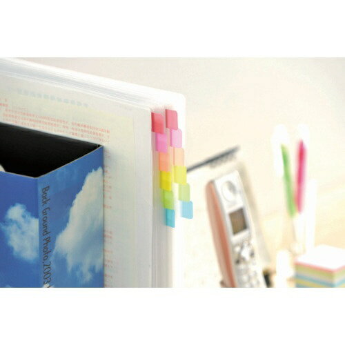■丈夫で破れにくい、フィルム素材のポスト・イット[[R上]] 製品です。■貼ると透明になり下の絵や文字を隠しません。■1枚ずつ取り出せるポップアップ式です。■しっかりとした厚みの素材で折れにくく安心です。■散らばりがちな書類をスッキリ整理できます。■厚口のよりしっかりしたフィルム素材使用なので、本や雑誌、資料ファイルの外に出ていても折れにくく安心です。■色分けして、見た目もスッキリなファイリングが実現できます。■よりしっかりした厚口のフィルム製です。■水分散性粘着剤を使用しています。【用途】・ファイルやカタログのインデックスに。【仕様】・色: ピンク・ブライトグリーン・オレンジ・縦(mm): 40・横(mm): 18・パック入数(枚): 300・箱入数(枚): 300・10枚X3色X10個画像はイメージです。実際の商品とは色・サイズ・数量などが異なる場合がございます。