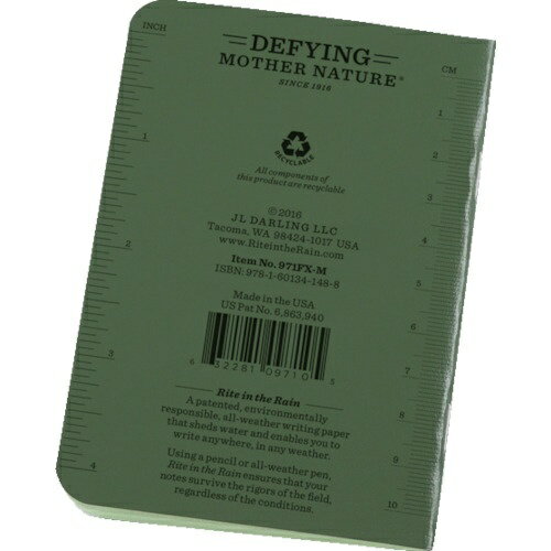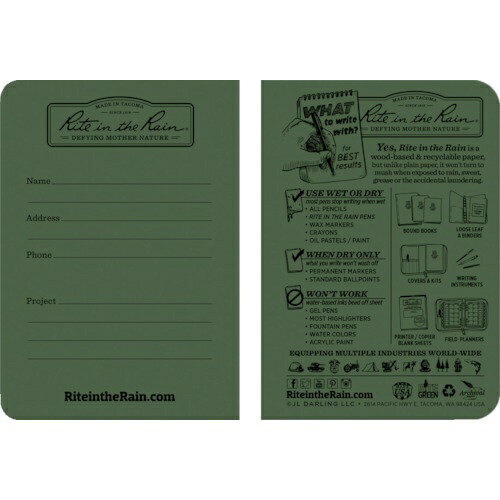 Rite in the Rain|ライトインザレイン 3 1/4X4 5/8 ミニステイプルノートブック(3冊セット)ユニバーサル・グリーン
