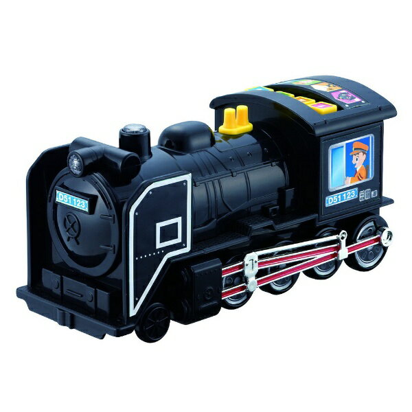 おしゃべりシリーズの蒸気機関車です。ボタンを押すとピカピカ光って、走行音や汽笛、おしゃべり3種、メロディ4曲が鳴ります。○対象年齢: 3歳以上○電池: 単3電池×2本(別売)