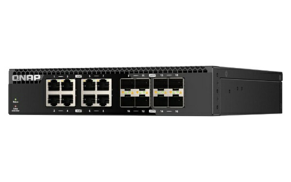 SMB/SOHO高速ネットワーク環境向けハーフワイドラックマウント16ポート10GbE アンマネージドスイッチリーズナブルな価格で、10GbEポートをより小さなスペースに増設。QNAP QSW-3216R-8S8T は、8つの10GbE SFP+ ファイバーポートと8つの10GbE RJ45ポートを備えた、ハーフワイドラックマウント・アンマネージドスイッチです。プラグアンドプレイでセットアップ可能な QSW-3216R-8S8T は、ネットワークループの検出およびブロック機能を備えており、ご家庭やビジネス用でもお手頃な価格で高速ネットワーク環境を簡単に構築することができます。ハーフワイド設計の QSW-3216R-8S8T は、スペースを取らずに作業環境に設置できるため、一つの1Uラックスペースに2台設置することが可能です。QSW-3216R-8S8T は、高品質かつ信頼性の高いネットワークソリューションを提供します。■10G マルチギガ接続性能各種インタフェースに接続可能な、8つの10GbE RJ45および8つの10GbE SFP+ファイバーポートを備えています。■エントリーレベルのソリューション自動ループ検出とブロック機能が継続的なネットワーク運用を実現します。■フロー制御QSW-3216R-8S8T は全二重モードでのIEEE802.3xフロー制御に準拠することで、圧倒的な帯域幅によるパケットロスを回避します。