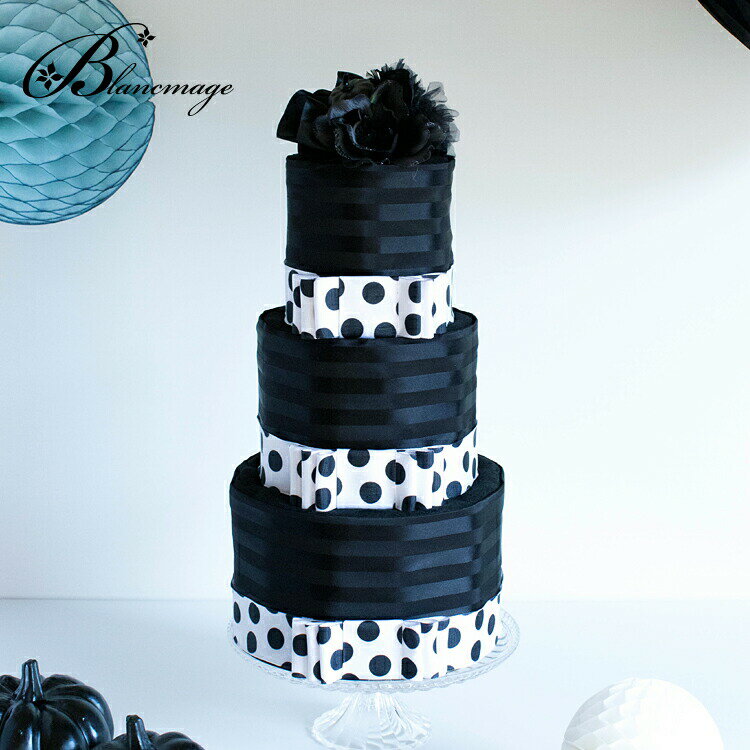 出産祝い おむつケーキ ブラック ドット(水玉)おむつケーキ 送料無料 ヘアアクセ コサージュ