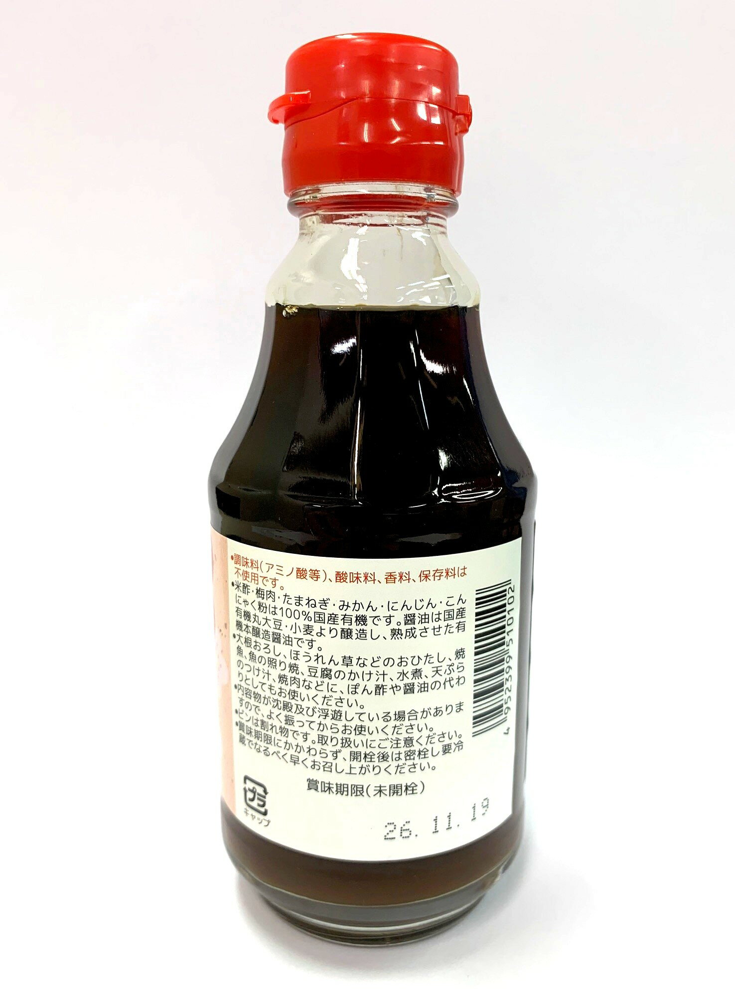 有機JASマーク付きのドレッシングです。有機梅の風味豊かなノンオイルドレッシングです。サラダだけでなく豆腐料理などにもよく合います。あっさりした中にもこくがある上品な味に仕上げました。米酢、梅肉、たまねぎ、みかん、にんじん、こんにゃく粉は100%国内産有機です。醤油は国内産有機丸大豆・小麦より醸造し、熟成させた有機本醸造醤油です。 大根おろし、ほうれん草などのおひたし、焼魚、魚の照り焼、豆腐のかけ汁、水煮、天ぷらのつけ汁、焼肉などに、ぽん酢や醤油代わりとしてもお使いください。 原材料: 有機醤油(有機大豆(国産)、有機小麦(国産)、食塩)、有機米酢、有機梅肉、有機たまねぎ、麦芽水飴、有機みかん、有機にんじん、食塩、有機こんにゃく粉 保存方法: 直射日光を避けて保存してください。賞味期限にかかわらす、開封後は密栓し要冷蔵でなるべく早くお召し上がり下さい。