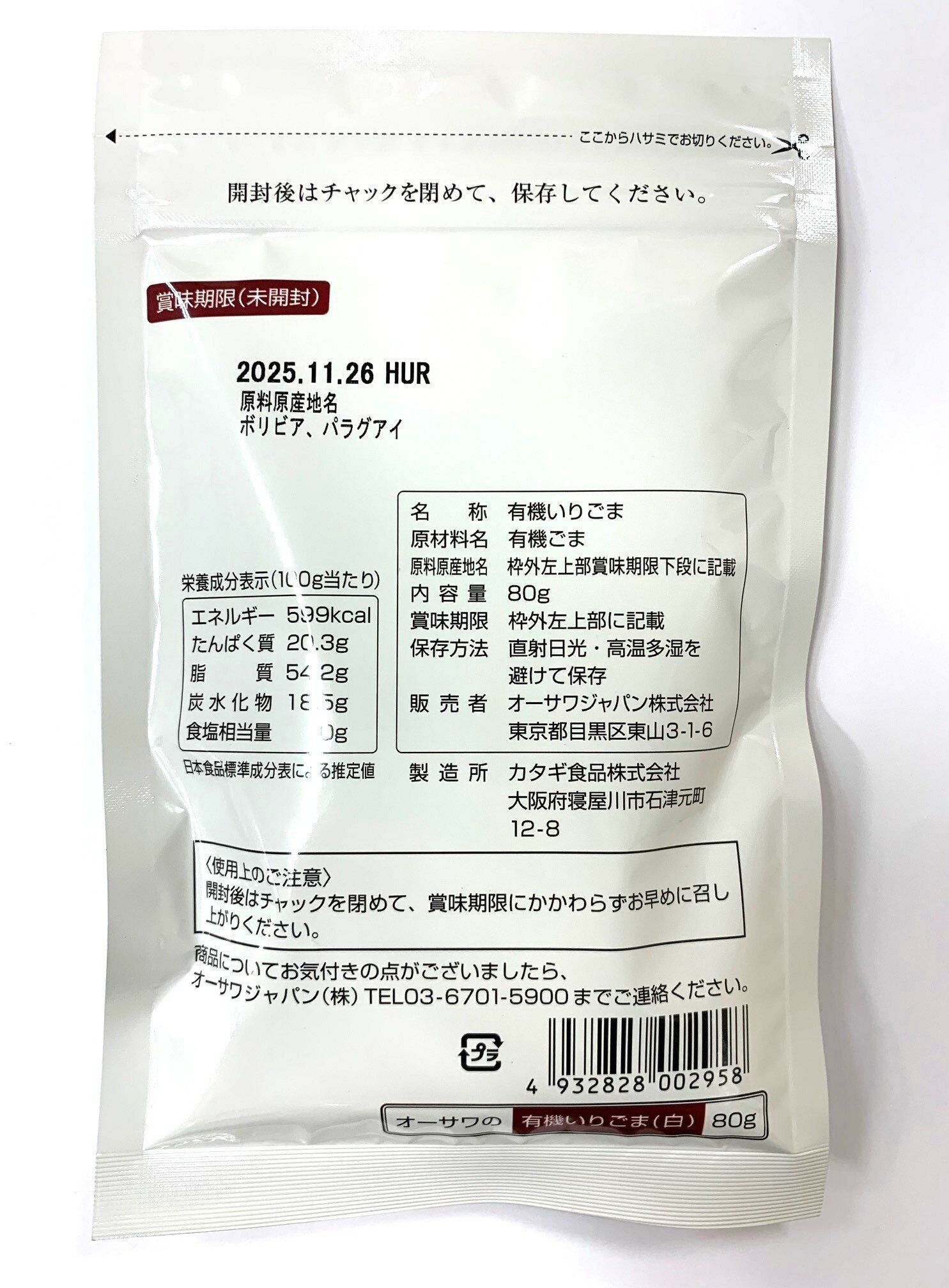 【送料無料(メール便)】オーサワの有機いりごま(白)80g x4個セット