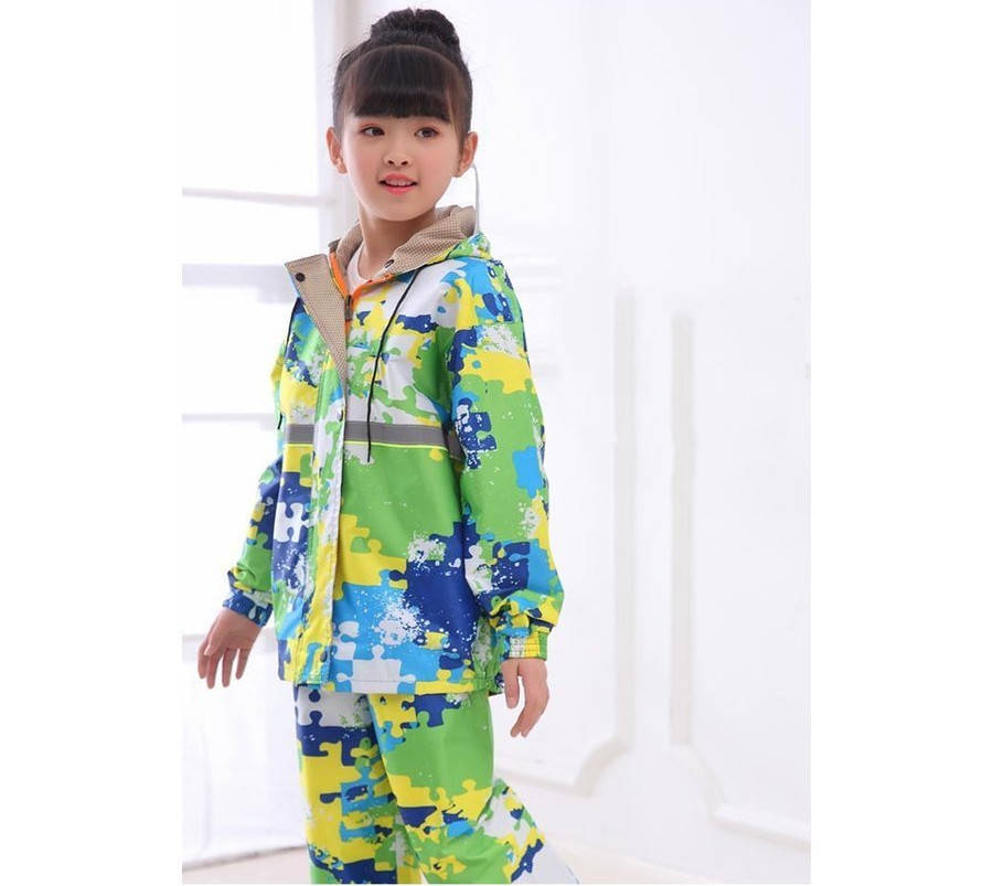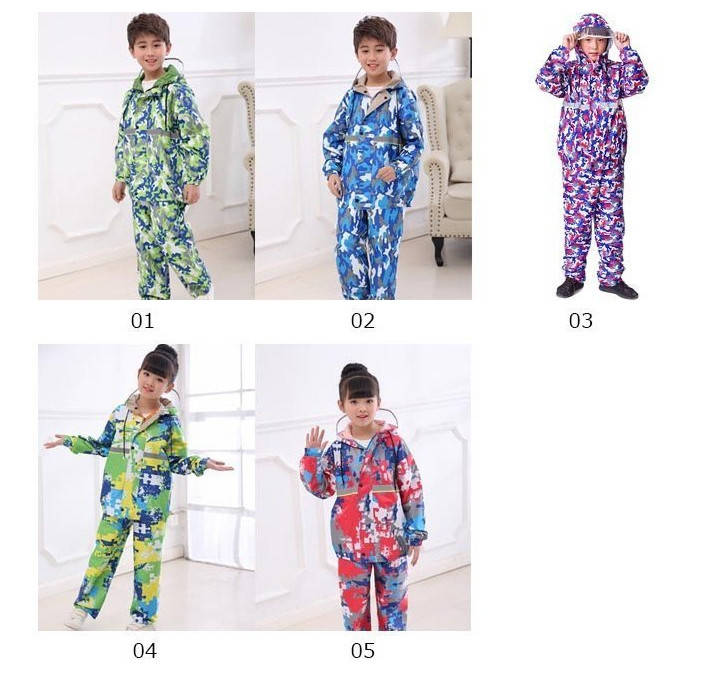 2点セット レインコート キッズ 上下セット 迷彩 前開き フード付き 子供 男女兼用 セットアップ 撥水 通勤 通学 カッパ 雨 雨具 防水