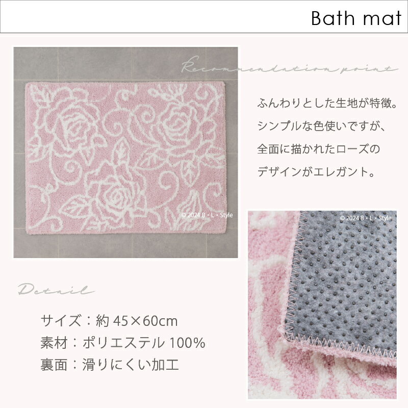 バスマット 「クリアローズ2」約45×60cm ライトブルー ライトピンク ホワイト [ バラ ローズ バラ模様 花柄 薔薇模様 エレガント 上品 お風呂マット おふろマット 洗える 足拭き 足ふきマット すべり止め 浴室マット コンパクト センコー senko ]24SS