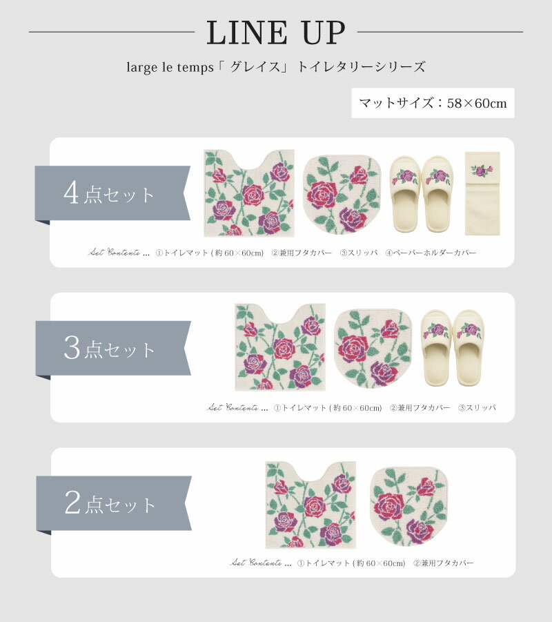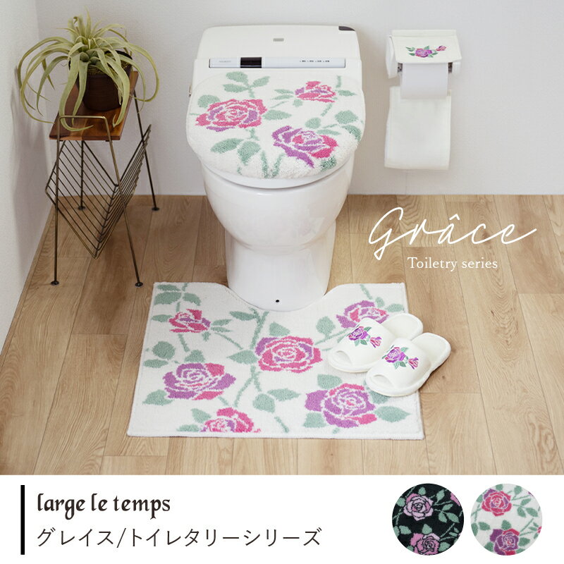 選べる トイレセット 「グレイス」【マット:約58×60cm】2点 3点 4点( トイレマット 兼用フタカバー スリッパ ペーパーホルダーカバーN )[ ラルジュルタン トイレカバー トイレタリー 洗える バラ柄 花柄 薔薇 ローズ おしゃれ 黒 白 センコー ]25AW ブラック アイボリー