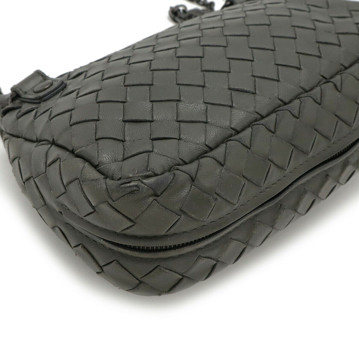 BOTTEGA VENETA ボッテガ ヴェネタ イントレチャート チェーンショルダーバッグ ポシェット 2WAY クラッチバッグ ポーチ レザー グレー 310774 【中古】