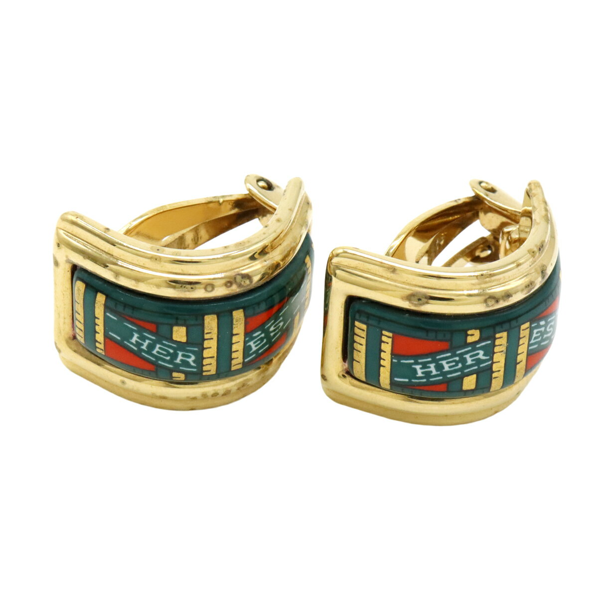 HERMES エルメス エマイユ イヤリング 七宝焼 GP グリーン レッド ゴールド 【中古】