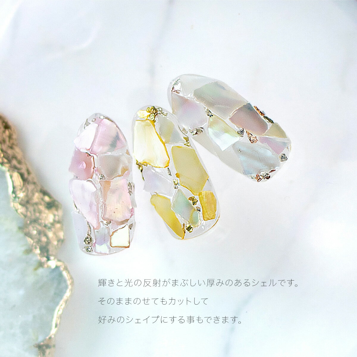 商品説明輝きと光の反射がまぶしい厚みのあるシェルです。そのままのせてもカットして好みのシェイプにする事もできます。ボンネイル ジェルネイル ネイル アート パーツ メタル ストーン シェルデザイン アイテム 大人ネイル ハンドメイド クラフト ブライダル 素材 レジン アクセサリーアート用品 デコ サロン セルフネイル トレンド カラフル商品内容約1.6g
