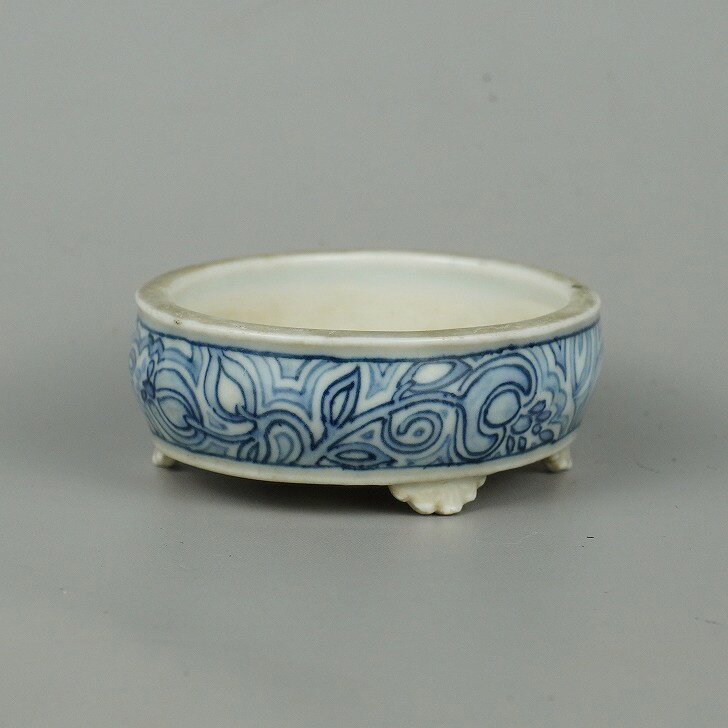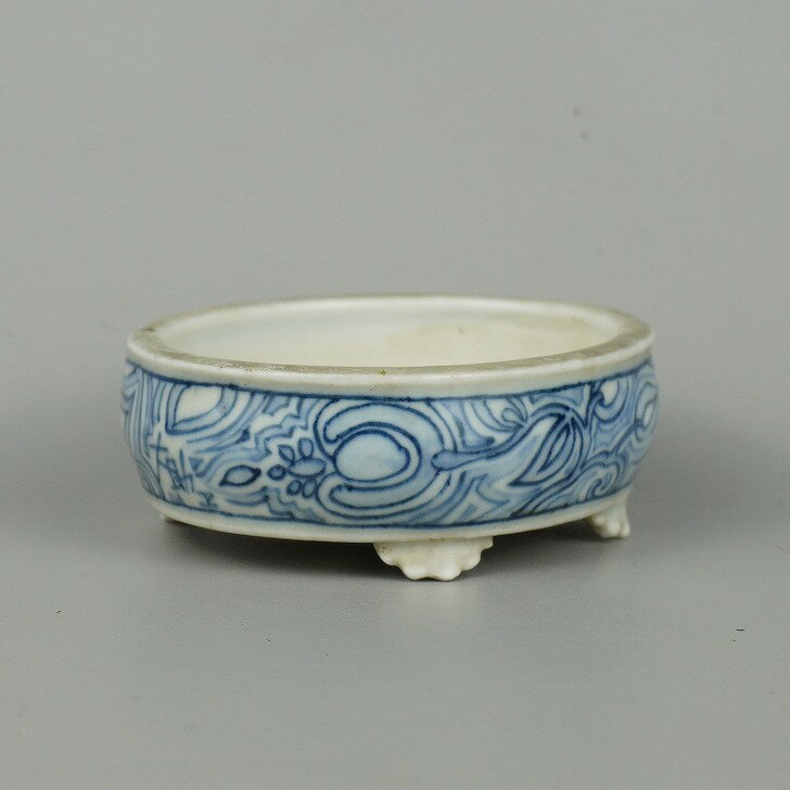 【中古】盆栽鉢 大助 小鉢 長辺 約 8.5cm 楕円鉢 染付 模様 箱付 現品 中古鉢