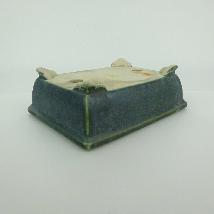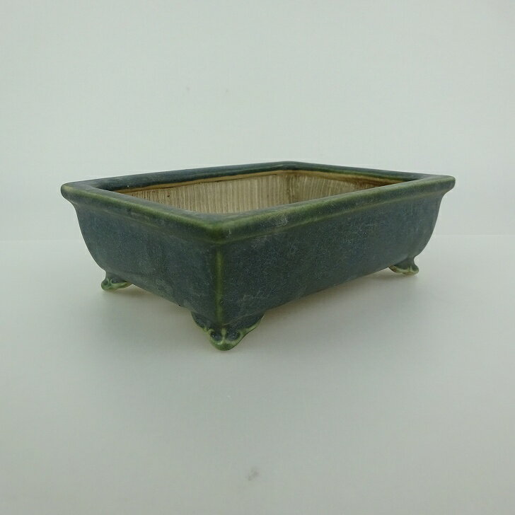 【中古】盆栽鉢 青香 小型 長辺 約 13.4cm 長方鉢 外縁 雲足 釉薬 現品 中古鉢 送料無料