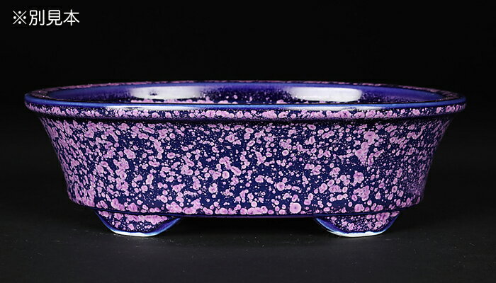 盆栽鉢 植木鉢 「平安泉山紫結晶楕円鉢」 山草鉢 色鉢 清水焼 京焼 磁器 6号 18cm パープル 小品 実物 花物 ミニ盆栽 山野草に最適 【送料無料】