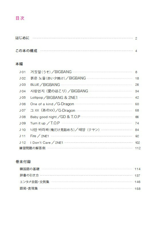 Hana HANA インプレスケイ ポップ デ カンコクゴ ハナ 発行年月:2015年02月 ページ数:165p サイズ:単行本 ISBN:9784844376736 うそ/BIGBANG/赤い夕焼け/BIGBANG/BLUE/BIGBANG/愛のほこり/BIGBANG/Lollipop/BIGBANG&2NE1/One of a kind/GーDragon/あの××/GーDragon/Baby good night/GD&T.O.P/Turn it up/T.O.P/俺だけ見詰めろ/テヤン/Fire/2NE1/I Don’t Care/2NE1 大人気のKーPOPでしっかり韓国語が勉強できる!大人気のKーPOPの歌詞一曲一曲に、丁寧な語彙&文法解説、分かりやすい発音表記を付け、学習教材にしました。 本 語学・学習参考書 語学学習 韓国語 語学・学習参考書 語学辞書 その他 語学・学習参考書 辞典 その他
