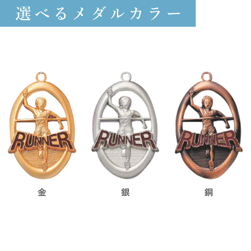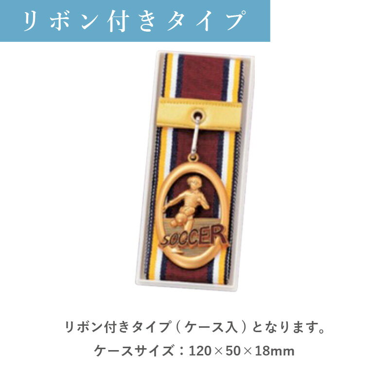 (仕様) リボン付・プラケース入 メダルサイズ:約55mm×約36mm ケース:サイズ120×50×18mm ※表示寸法はタテ×ヨコです。 (納期) 受注生産の為、約1週間〜10日程度かかることがあります。 ご注文後のキャンセルはご遠慮ください。 ※裏面のプレートに文字彫刻ができます。 ※彫刻する文字、大会名などありましたら「名入文字」へご入力ください。 ◆刻印について◆ ※プレートのサイズによってはレイアウトを変更させていただく場合もございます。ご了承ください。 (メダル10種類) ※名入れ不要の場合は500円(税込)お値引きいたします。 カート上や自動返信メールでは割引額が反映されませんので、ご注文を確認後、弊社で値引き処理させていただき、お客様へ最終金額をご案内させていただきます。 【絵柄 10種類】の中から1つお選びください。 お得情報プレートに文字彫刻いたします!お得情報