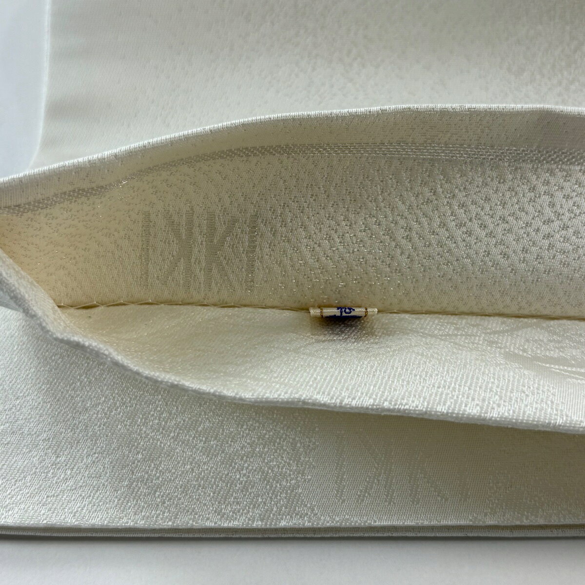 【美品】 袋帯 名品 落款あり IKKI 幾何学模様 銀糸 白 お太鼓柄 正絹 【中古】 msp50