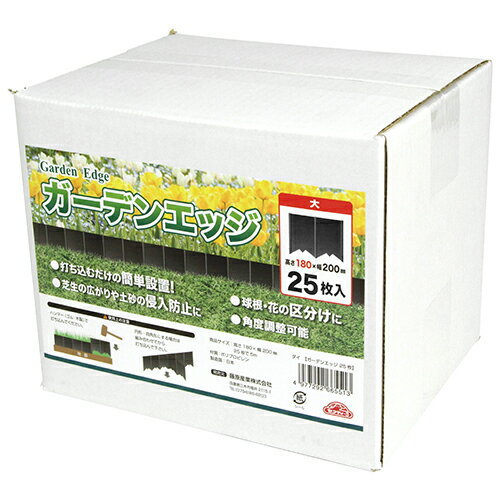 連結して打ち込むだけの簡単設置です。球根・花の区分けにも最適です。花壇や菜園への芝の根や土砂侵入を防止します。角度調整可能で簡単に四角・円型にできます。サイズ:幅200×高さ180×奥行13mm重量:54g入数:25枚PP