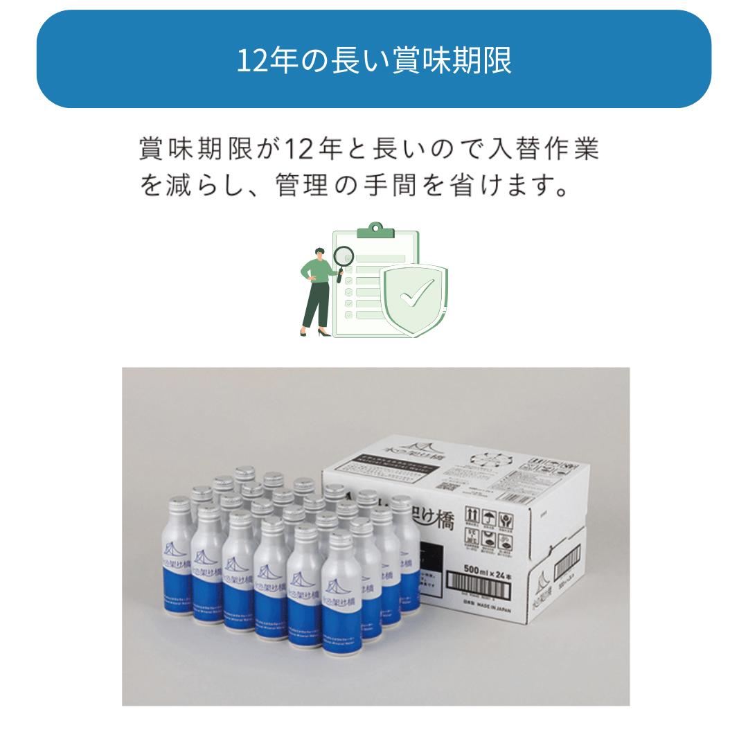 【12年保存】 保存水 備蓄水 水の架け橋 水 500ml 24本 非常時 飲料水 アルミ缶 UACJ 防災 災害 地震 保管 長期保存 ナチュラルミネラルウォーター おすすめ 5年 10年