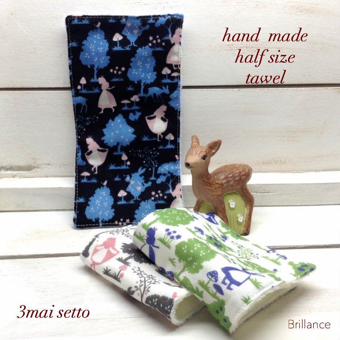 商品説明素材表 Wガーゼ 綿100%) 裏 パイル(綿100%)サイズ幅 ᅠ 10cm高さ 20cmハンドメイド品、布小物の為計る環境等で数ミリの誤差が出る場合が有ります。(特徴など)ハンドメイド商品 お店で1番人気のタオルハンカチの 待望のハーフサイズの展開です。表はコットン裏はシャーリング加工のタオル地ガーゼとタオルで程よく厚みがあります。 二つ折りで普通のハンカチサイズなので小さなお子様でもかんたんに畳めます!そして制服などのポケットにも収納できます!何より、洗濯してもアイロンしなくて良いのは大助かり! ネームが記入できるテープタグを付けているので移動ポケットに外付けできます。 こちらはネットショップと百貨店様のキッズコーナー限定でご紹介しています。注意 ハンドメイド品です(工業用ミシン使用)販売商品は[ハンカチ]のみです。画像に写っている小物は含まれません。 プリント生地の特性上、ネップや色落ちがある場合がございますが、素材の風合いとなります。 モニターの環境や設定などで、実際の商品とは若干違う場合がございます。布製品のため若干の縮み等は避けられません。 手洗いやソフト洗いで形を整えて乾かして下さい。お願い 弊社店舗での卸販売もおこなっております。 注文が完了しましてもわずかの差で売り切れてしまうこともございます。ご迷惑をおかけしますがご理解いただくようにお願い致します。 1点1点ハンドメイドで心を込めて制作しています。既製品にはない特性・特徴もございますのでご理解の上ご購入・ご愛用くださいませ。人気のハーフサイズのミニタオル表はwガーゼ裏は肌触りの良いループ状のタオル地(シャーリング加工)小さなお子様でも畳みやすい コンパクトサイズ 縦20cm 横10cm 3枚セットでのご紹介です