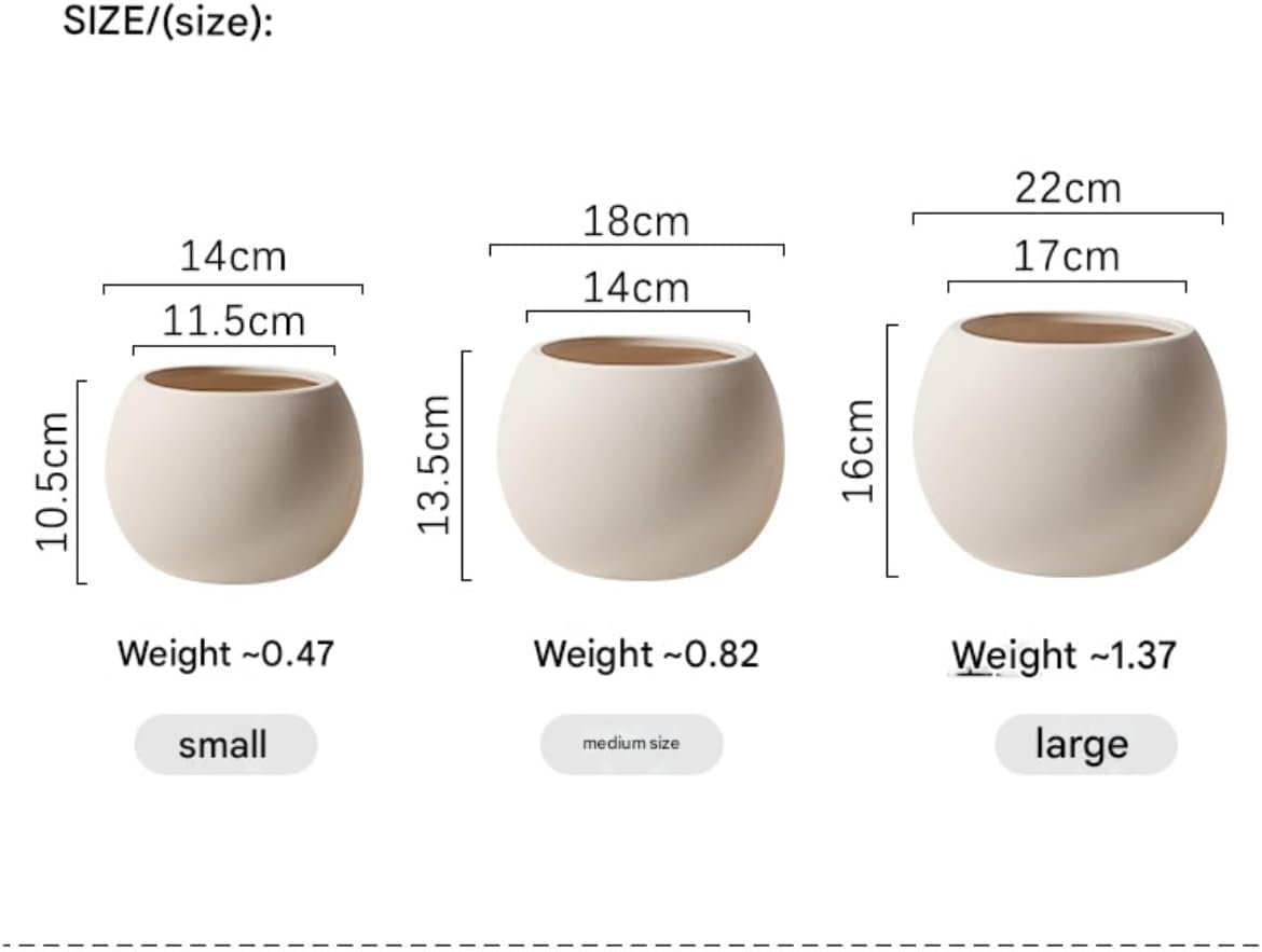 植木鉢、陶器鉢、白、おしゃれ、丸型、受け皿付き、水盤、フラワーポット、鉢植え、観葉植物、排水穴付き、北欧インテリア、部屋のインテリア (トレイなし 14*14*10.5cm,ホワイト)