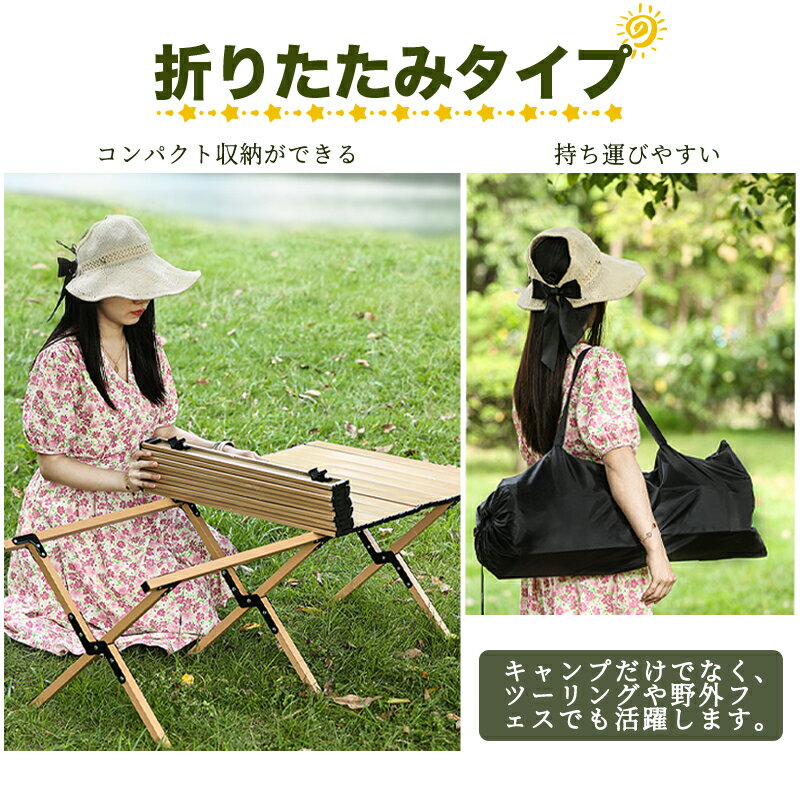 アウトドア テーブル 椅子 木製 折りたたみ 軽量 持ち運び 収納袋付き キャンプ レジャールッド ロールトップ バーベキュー ピクニック パクト折り畳み おしゃれ 豊富なサイズ 3色