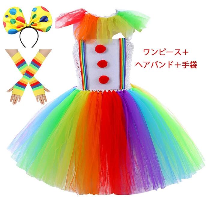 部分 ハロウィン ピエロ コスプレ 3点セット ハロウィン コスプレ 子供 女の子 レインボーチュチュ ハロウィン 衣装 仮装 可愛い ピエロ
