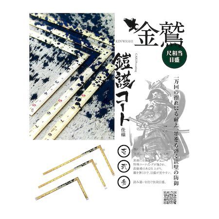新潟精機0256-31-5660【商品説明】●特徴●1万回の擦れにも耐え、墨をも弾く鉄壁の防御●擦れに強く、通常品と比べ10倍の耐久性●表面には黄金の特殊コーティングが施され、高級感のある仕上がり。●読み違いを防ぐ快段目盛●仕様●呼び寸:1尺●長手(妻手)×幅×厚さ:340(165)×15×1.3mm●目盛側面の直角度:100mmにつき0.1mm以下●長さの許容差:10/33m ±0.2mm