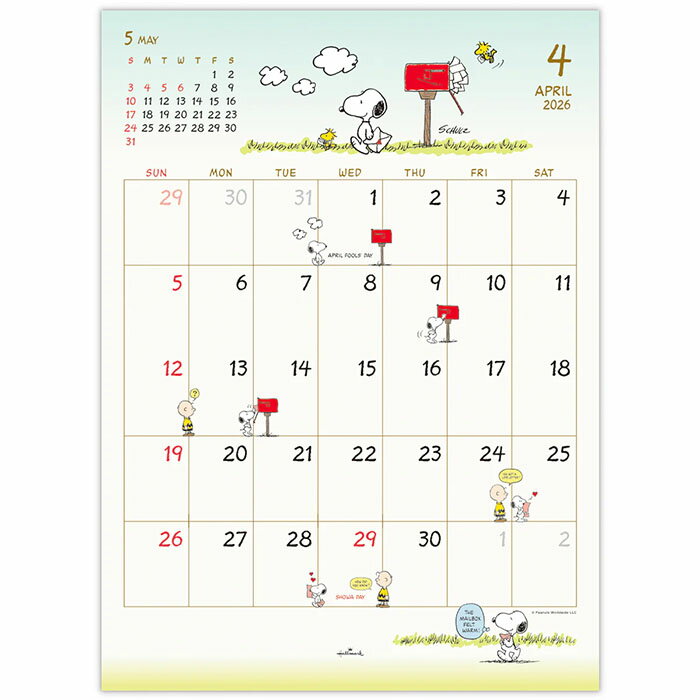 日本ホールマーク 2026年 壁掛け|二つ折りカレンダー大 スヌーピー ピーナッツ