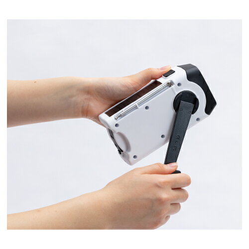 80dBのSOSアラーム付き●サイズ/146×62×78mm●重量/300g●電源/内蔵充電池(手回し、ソーラーパネル、USBポート)●防滴性能/IPX3●付属品/USBケーブル(Micro-B:Type-A)、ストラップ※繁忙期は多少納期をいただく場合がございます。e126-690