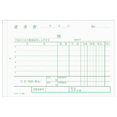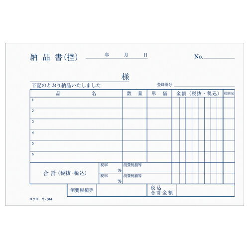 【ゆうパケット対応可】NC複写簿 4枚納品書 請求書受領書付 A6横 6行 50組 ウ-344【コクヨ】