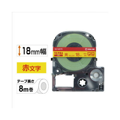 テプラPROテープカートリッジ (パステル) 黄に赤文字18mm幅×8mSC18YR【キングジム】