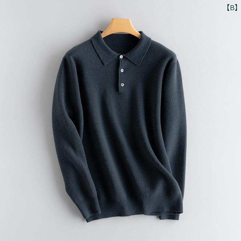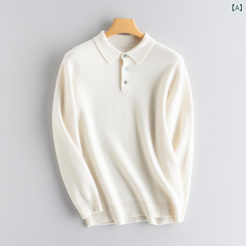ニット メンズ 男性用 セーター シャツ襟 プルオーバー 厚手 無地 ビジネス カジュアル トップス 秋冬 M L XL XXL ホワイト グレー ブラック