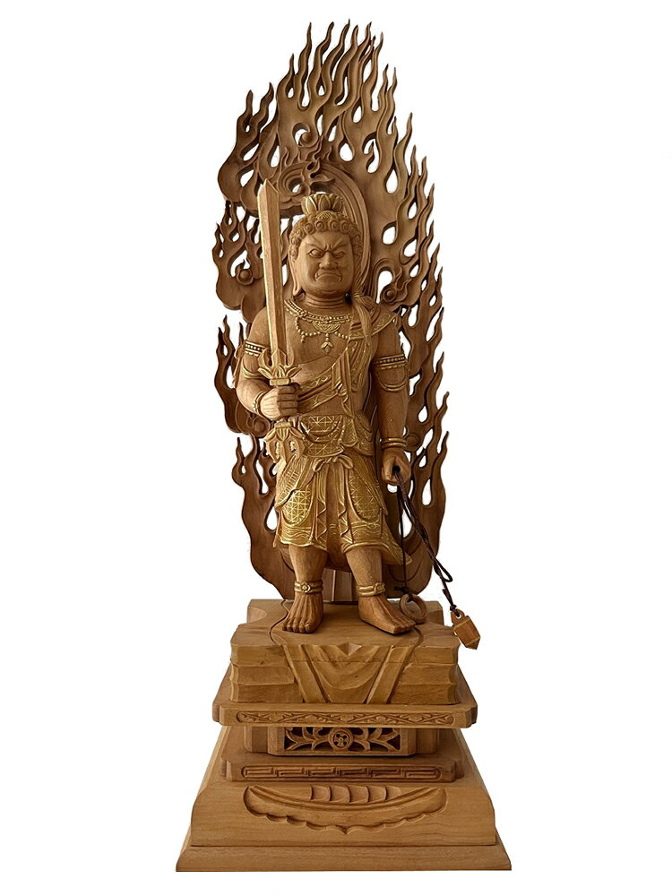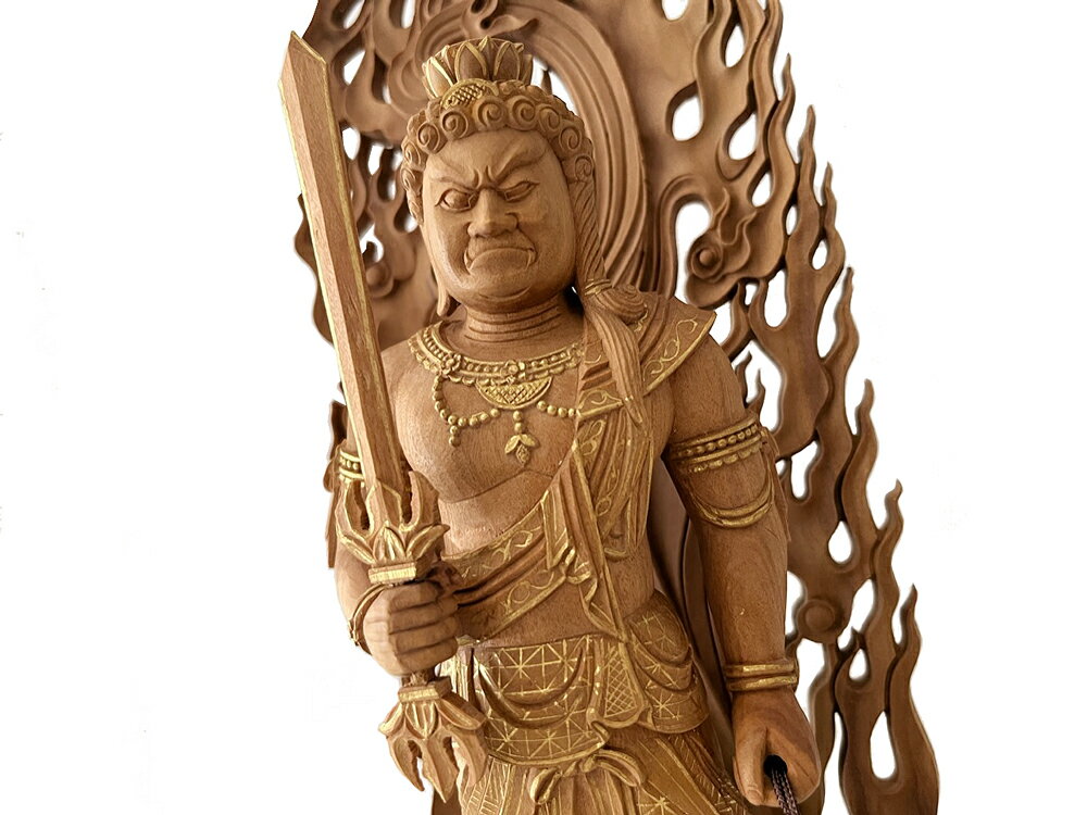 材質 とても貴重な白檀使用! 派手過ぎない金泥書で模様書きしているので、豪華でありながらも上品な仕上がり。 商品説明 不動明王 サイズ(約) 高27cm 巾10.4cm 奥7cm