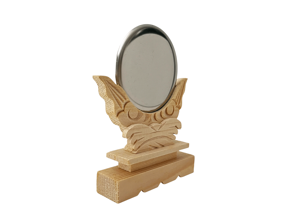 商品説明 神具の一つ、神鏡です。 鏡は金属製です。神棚の真ん中に置いて下さい。 サイズ(約) 鏡:直径6.3cm 鏡を置いた総高11.2cm 一番広い巾9cm 奥行2.2cm 配送方法 こちらの商品は、追跡なし郵送で送料無料になります。宅急便ご希望の方は、追加送料でご対応可能でございます。