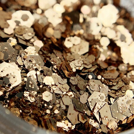 ゴールド2mm・1mm・0.5mmと、細かな六角ホロがミックスになっています。【内容量・備考】約1g