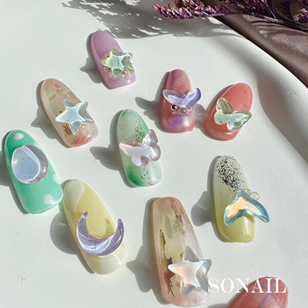 美しい月をイメージしたデザインです。 透明感のあるクリアストーンを使用しているので、 とても華やかな仕上がりになります。 品番:FY001266 カラー:レモンイエロー 内容量:2P サイズ:縦9mm×横11mm 備考:背面カーブなし