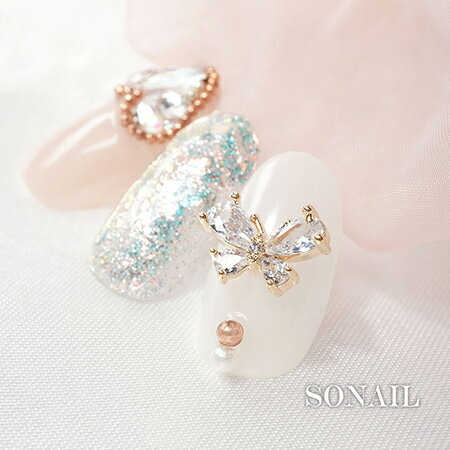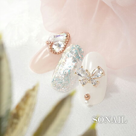 SONAIL ソネイル ドロップ・クリスタルパピヨン ゴールド FY002057 背面カーブなし 2P 【ネイルアート butterfly 蝶々 ネイルパーツ キラキラ モンシロチョウ】